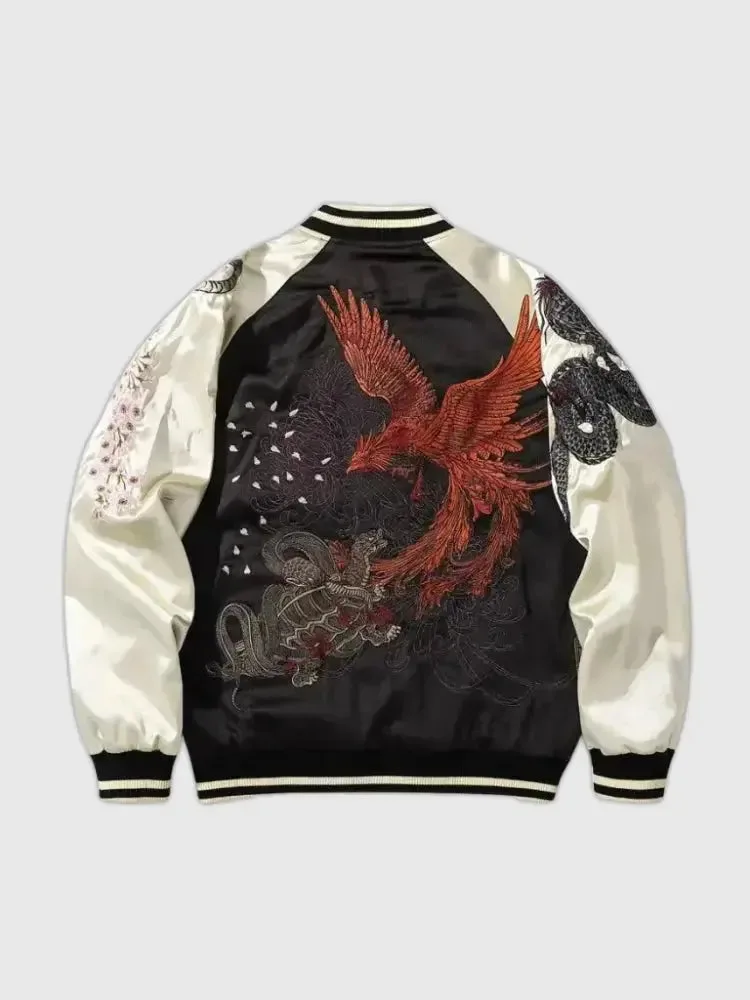 La signification du phénix comme symbole de renaissance et de feu. La fusion entre la mode traditionnelle et le style contemporain. Comment le blouson Sukajan peut rehausser votre style personnel. Les avantages esthétiques et culturels d’une telle pièce dans votre garde-robe. L’art de marier histoire et modernité à travers un vêtement unique.