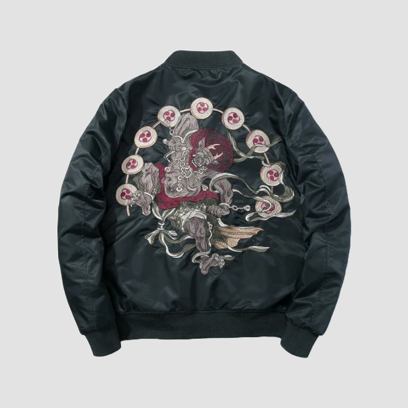 - Look urbain et motif traditionnel japonais. Ce sukajan est parfait pour compléter votre style streetwear unique